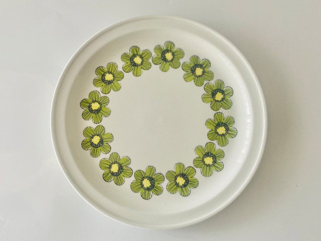 Arabia Primavera プリマヴェーラ プレート19.5cm アラビア社のデザイナー Esteri Tomura(エステリ・トムラ)デザインのPrimavera(プリマヴェーラ)シリーズです。Primaveraは「春」を意味しています。グリーン系のお花が春の爽やかなイメージを表現し、魅力ある繊細なタッチで描かれています。プリマヴェーラで華やかなテーブルコーディネートを楽しみましょう♬ 状態のご案内 カトラリー跡は多少ありますが艶があり大変綺麗なヴィンテージコンディションです。製造時に生じる素地の凸凹や焼成時の支え跡が縁と縁周りにあります。経年による細かなスレや汚れ、小傷などはご了承ください。 サイズ 直径約19.5cm [ご購入の前にご確認ください] 当店で取り扱っている商品は、北欧の一般家庭で実際に使用されていたヴィンテージ品です。目立つ傷や汚れについては出来るだけ商品説明にて記載しておりますが、明記していない経年の劣化や使用に伴う細かなスレや傷、汚れなどがあることもございます。また、当時の北欧の陶磁器に多く見られる焼成時の支え跡があります。新品では味わえない特有の風合いをお楽しみ頂けましたら幸いです。 食器類は日本の食品衛生法に基づき「装飾用」として輸入・販売しております。ご購入の前にあらかじめご了承いただきますようお願いいたします。