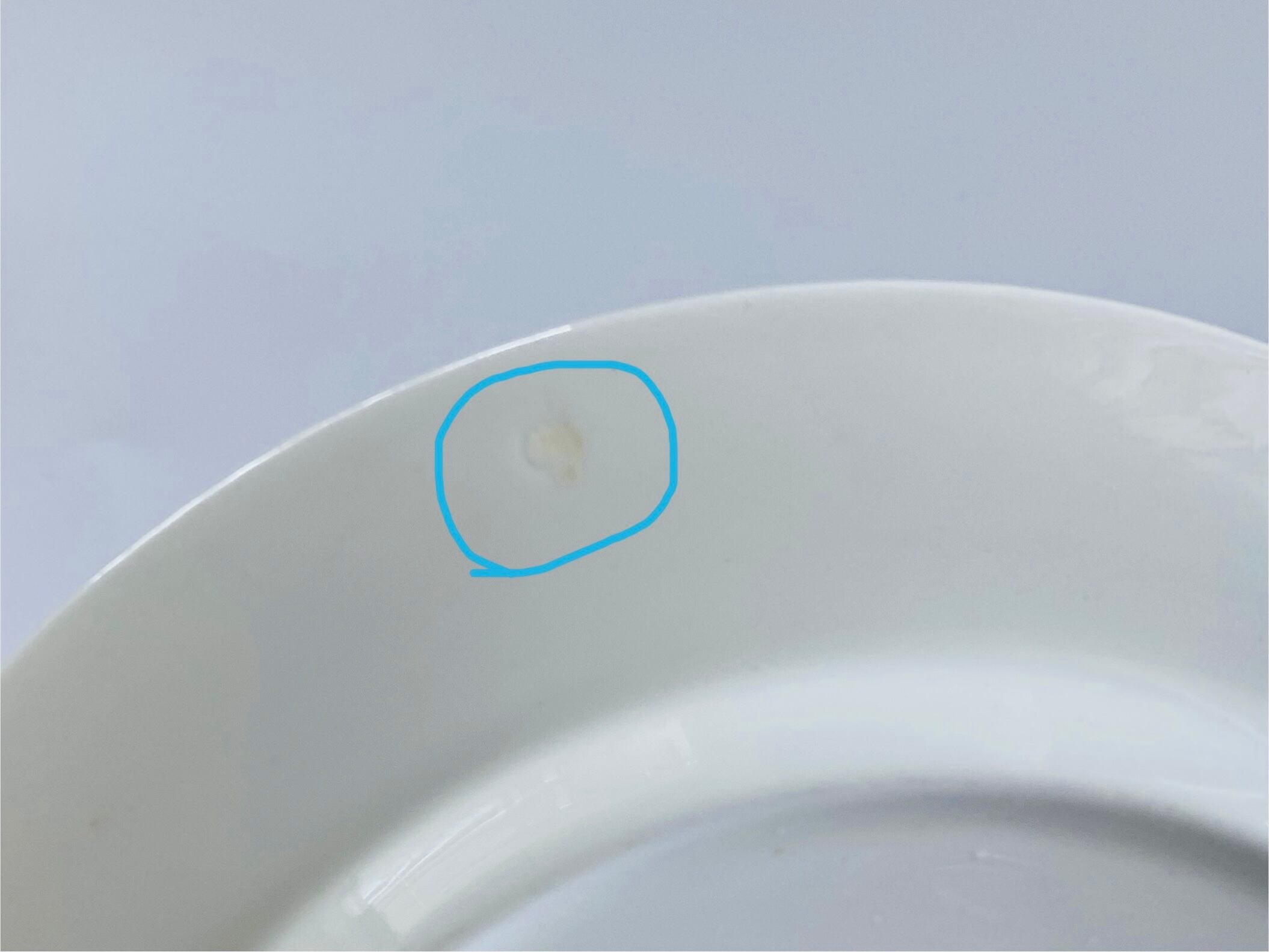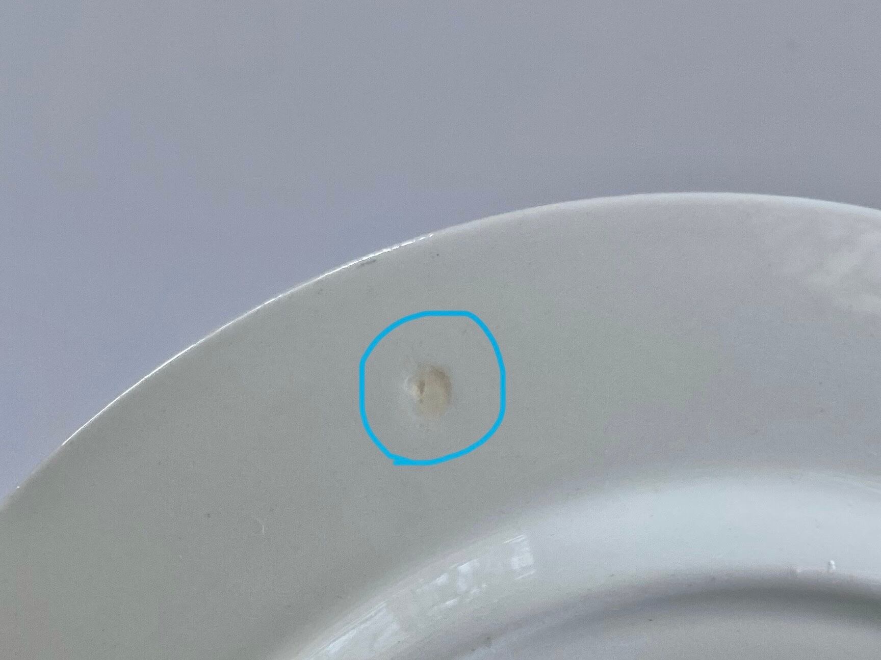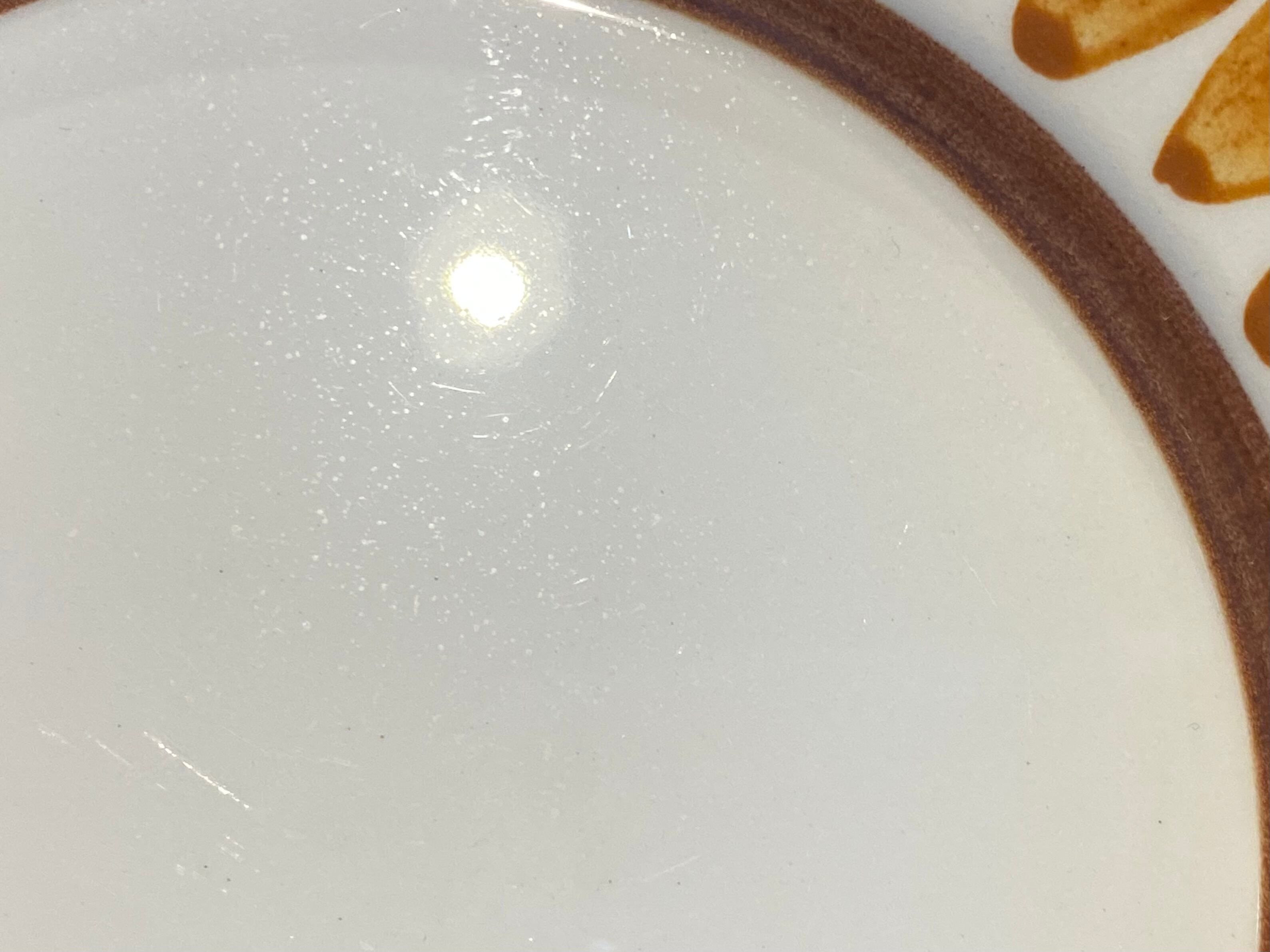 製造時による薄い斑点や極小の黒点、焼成時の支え跡などがあります。経年によるスレや汚れ、カトラリー跡が多少ありますがヴィンテージコンディションは大変良好です。