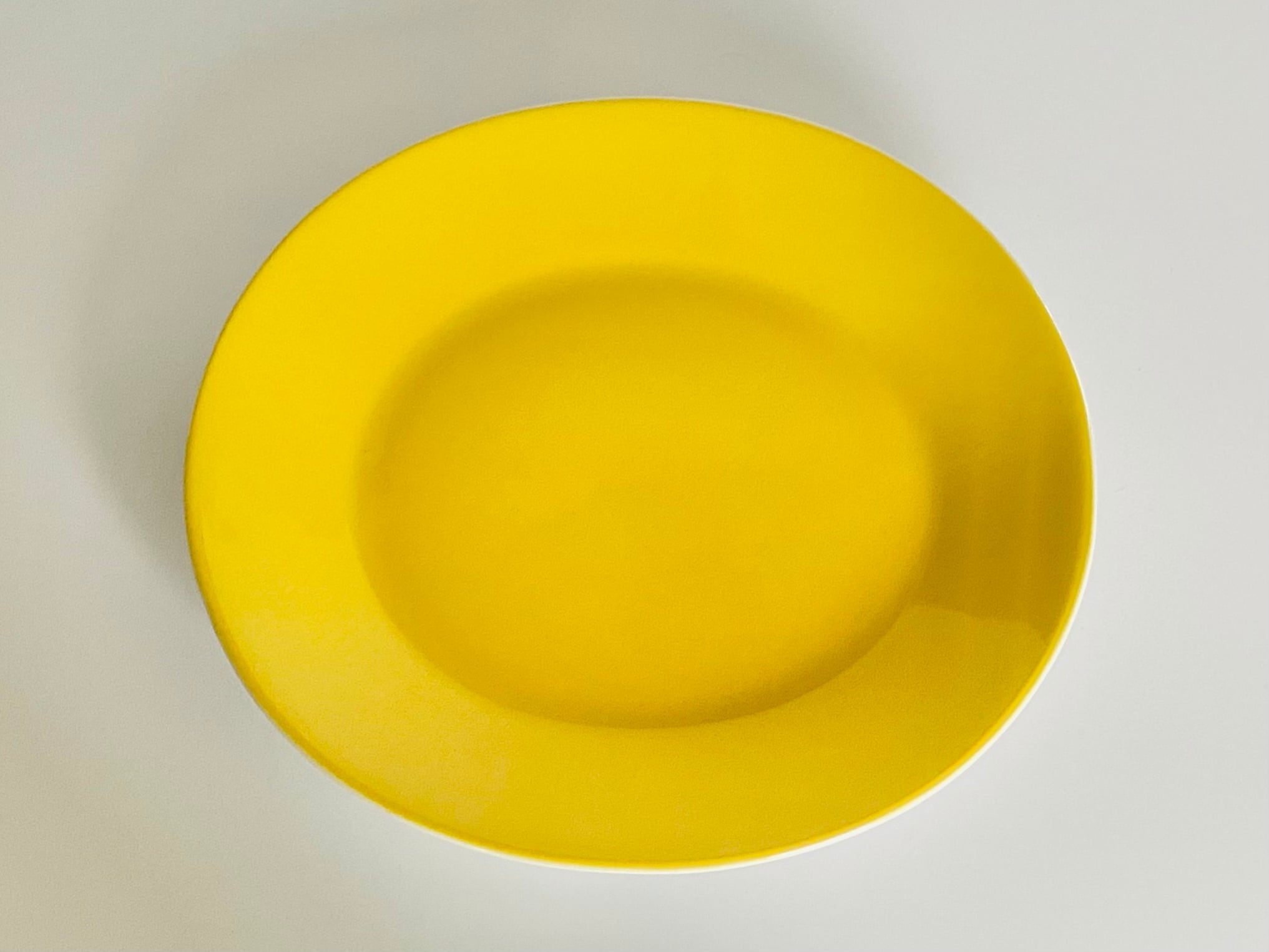 フィンランド、Arabia社 Aatami (アアタミ)シリーズから人気のオーバルプレートを入荷致しました。このシリーズは1969年に人気のパラティッシと共に制作されました。フォルムデザイン、デコレートデザイン共にビルガー・カイピアイネン。表面は優しいイエロー、裏面はホワイトのツートンカラーになっています。シンプルでとても使いやすいですし、可愛らしいオーバルデザインですので大変人気のあるアイテムです。