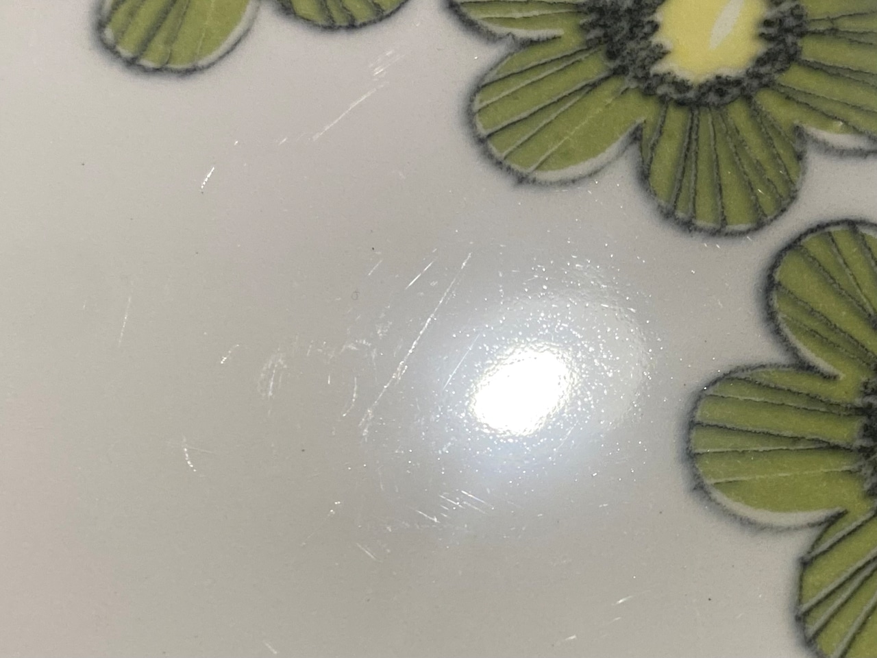 カトラリー跡は多少ありますが艶があり大変綺麗なヴィンテージコンディションです。製造時に生じる素地の凸凹や焼成時の支え跡が縁と縁周りにあります。経年による細かなスレや汚れ、小傷などはご了承ください。