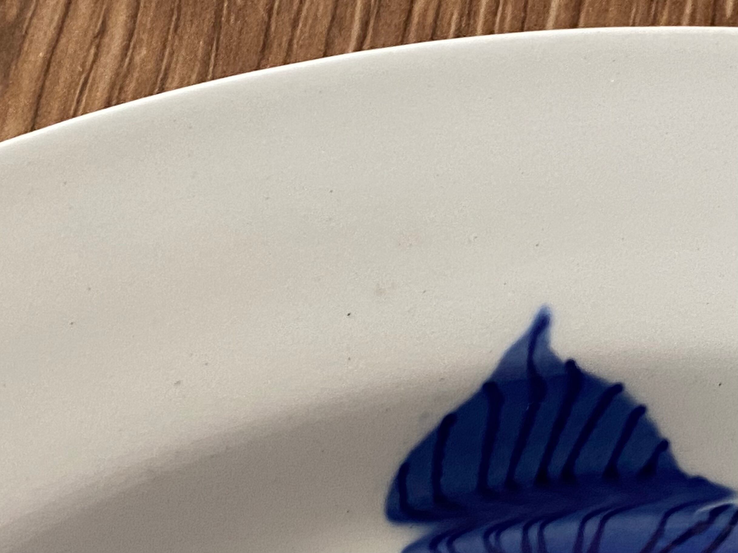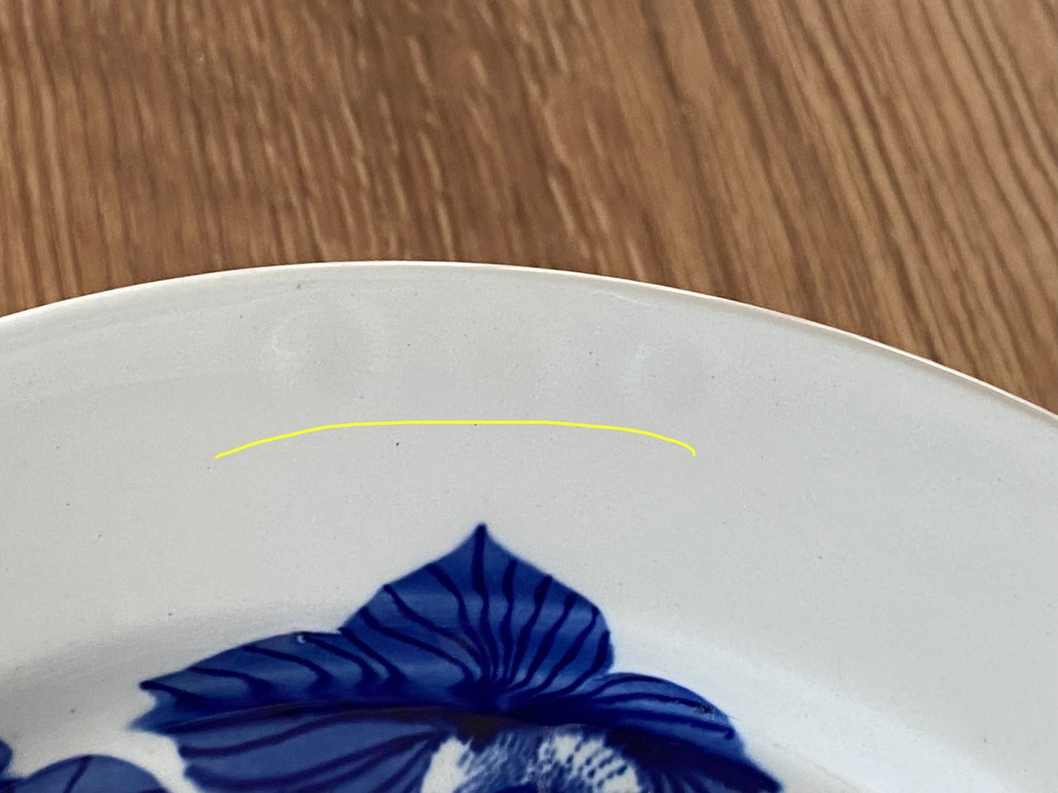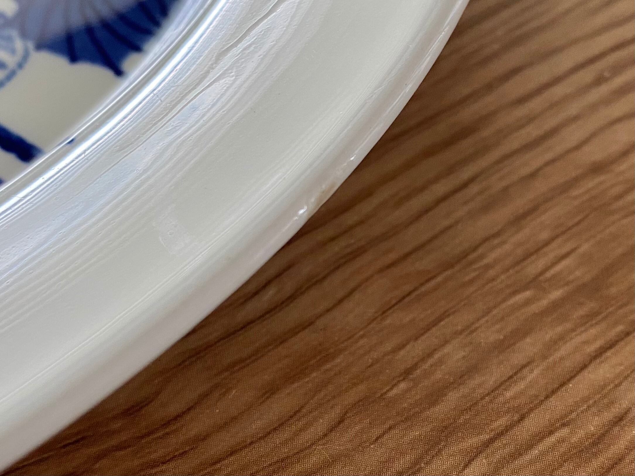 表面の細かなスレは少なく大変綺麗です。フチにスレのような状態が見られますが、その位置やスレの感じから焼成時の支え跡のようにも感じられます。判断が難しいものなので、その点をご了承くださいませ。、
