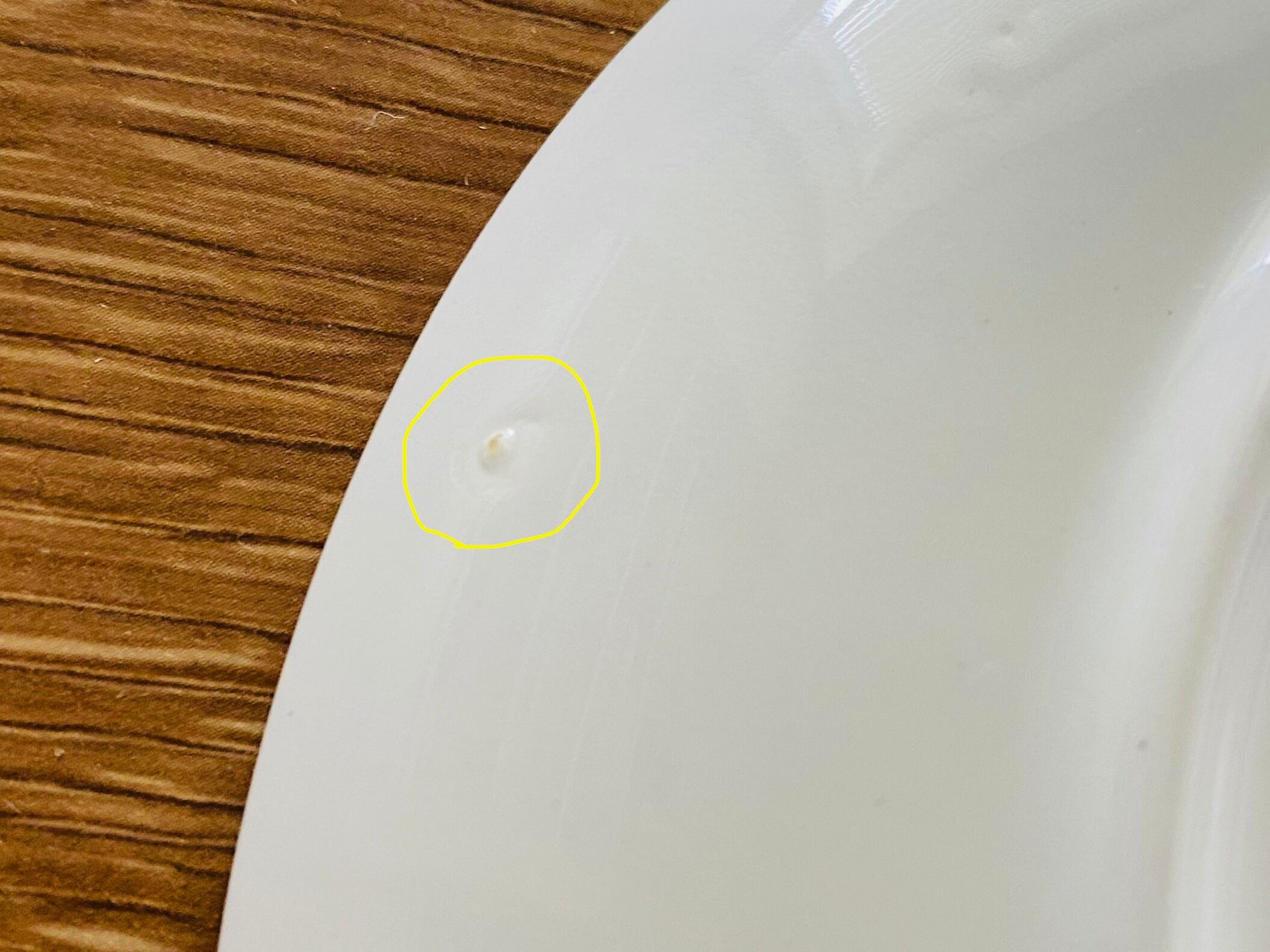 光を当てると細かなスレやカトラリー跡が少し見受けられますが大変綺麗なヴィンテージ コンディションです。裏面には焼成時の支柱跡があります。製造時による着色や黒点斑点、素地の歪みなどは多少ある場合がございます。また経年による細かなスレや汚れがありますのでご了承お願い致します。こちらはバックスタンプがありません。