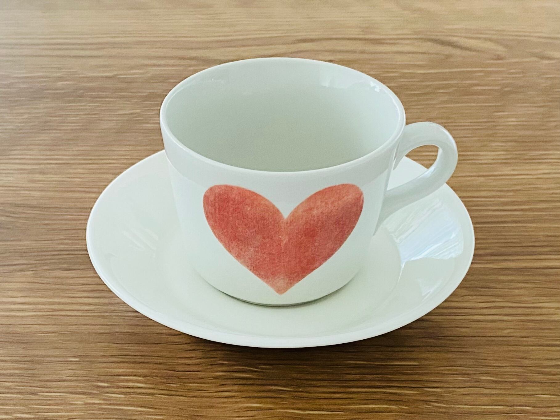 フィンランド・Arabia社70年代ビンテージハートのカップ&ソーサーです。白地に赤い大きなハートが前後に描かれ、シンプルでレトロ可愛いデザインです。フォルムはKaj Franck(カイ・フランク)。こちらのシリーズはハート、ダイヤ、スペード、クローバーの4種類があります。