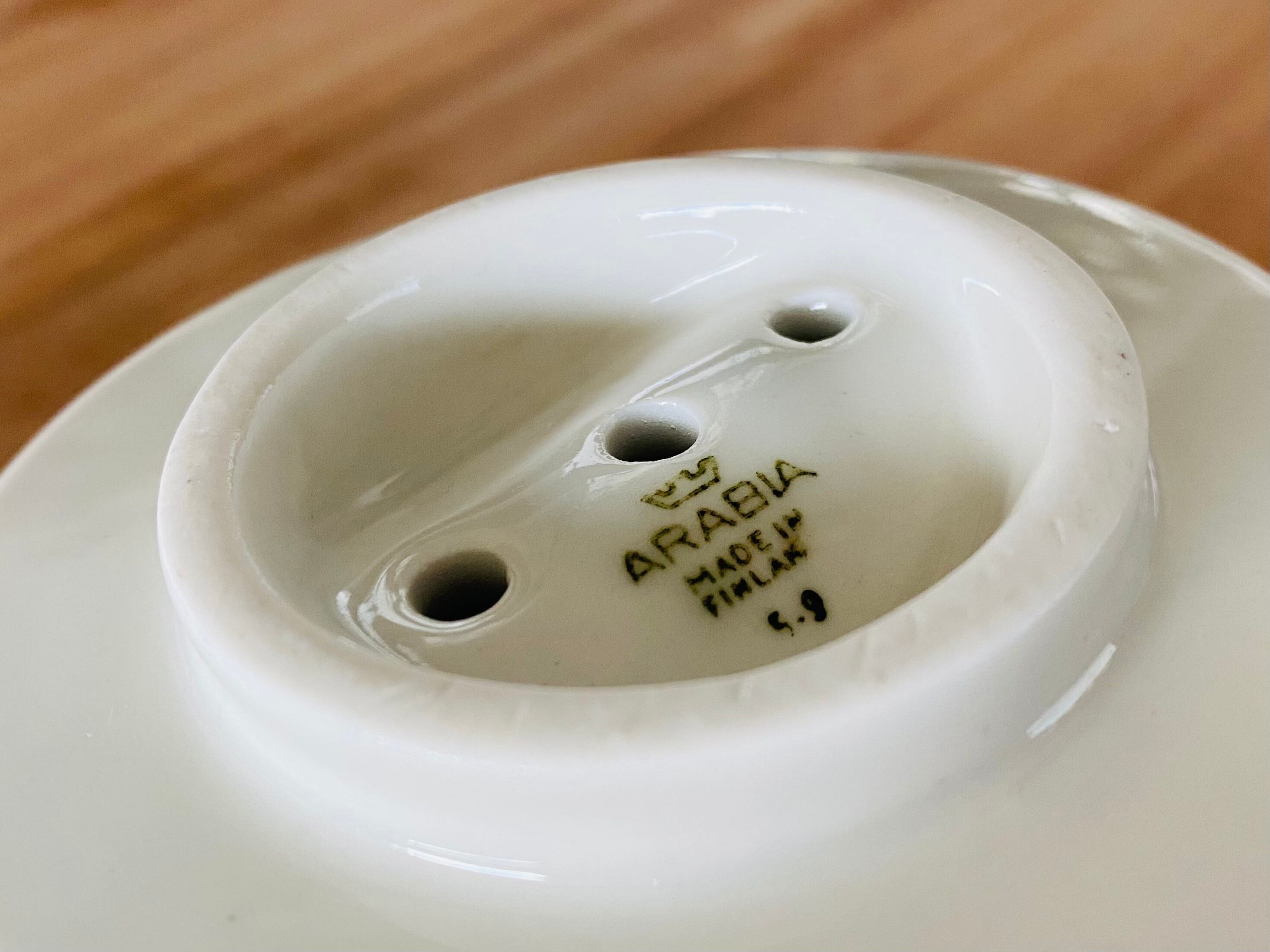 フィンランド Arabia (アラビア)社の珍しいアイテム、コーヒードリッパーを入荷致しました。1960年代に製造された3つ穴のドリッパーです。製造展開は3サイズですが、こちらは1番小さいサイズになります。