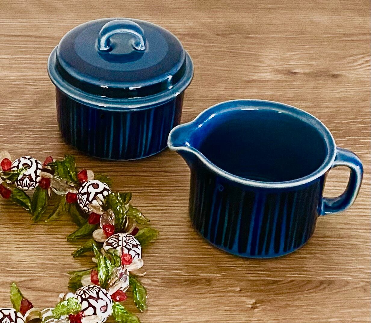 Arabia Kosmos コスモス ブルー クリーマー&蓋付きポット