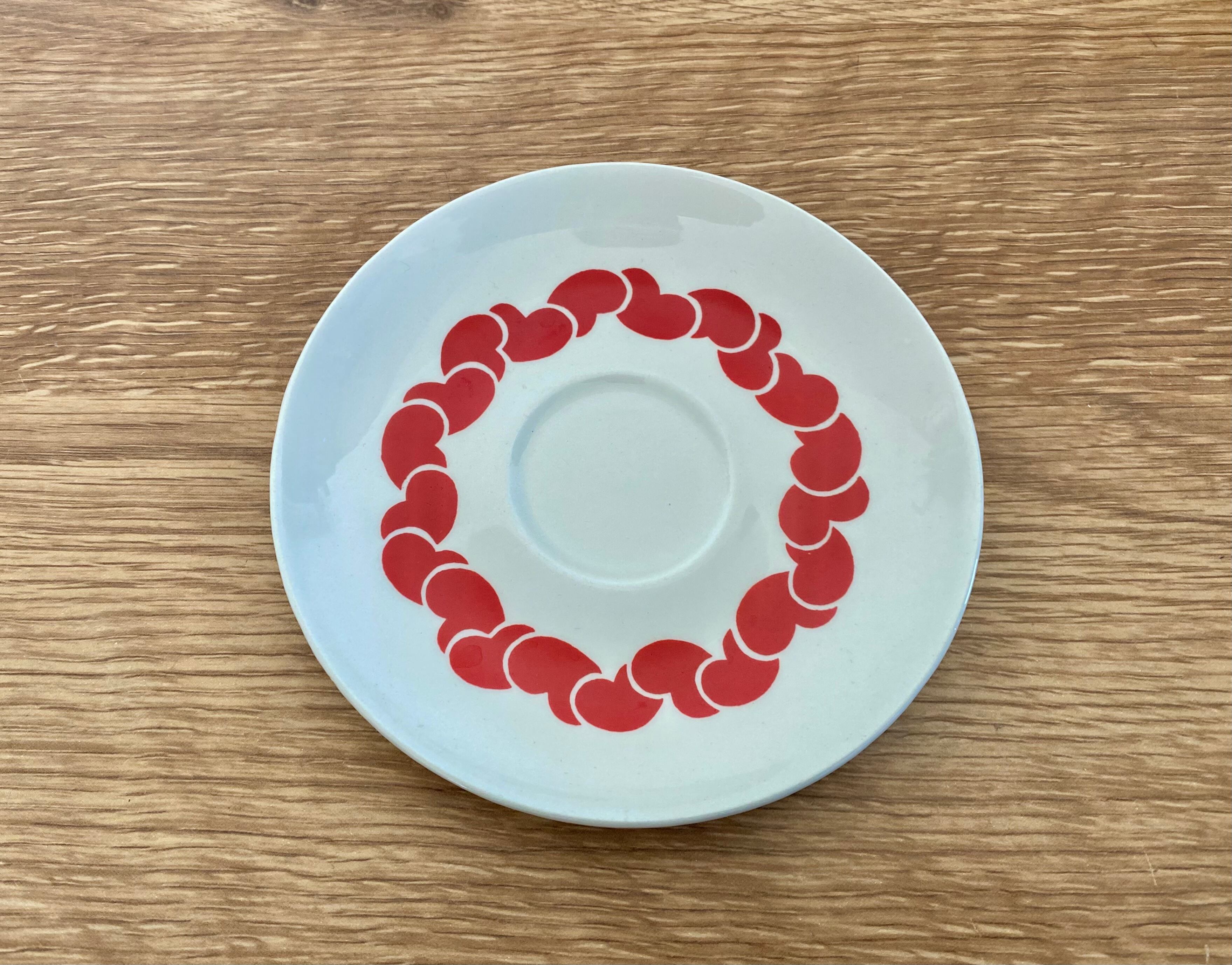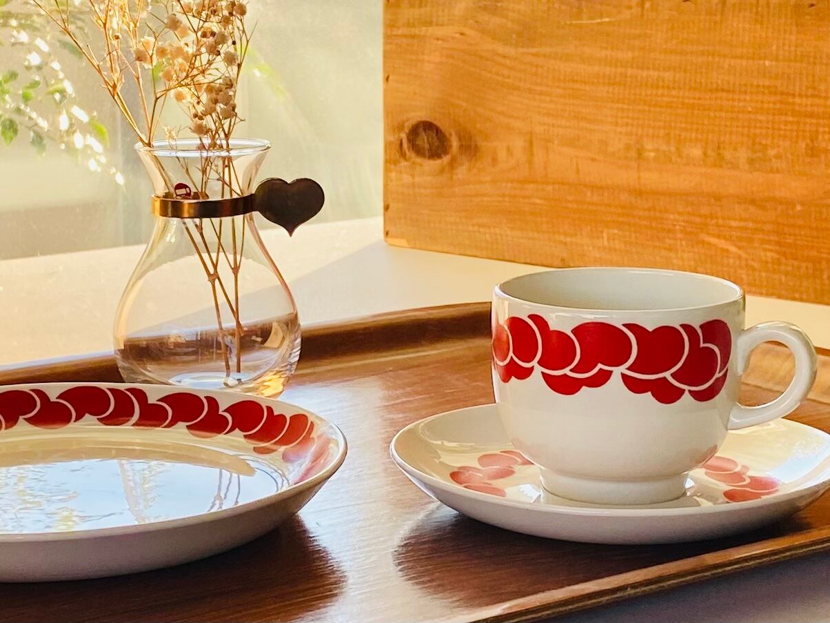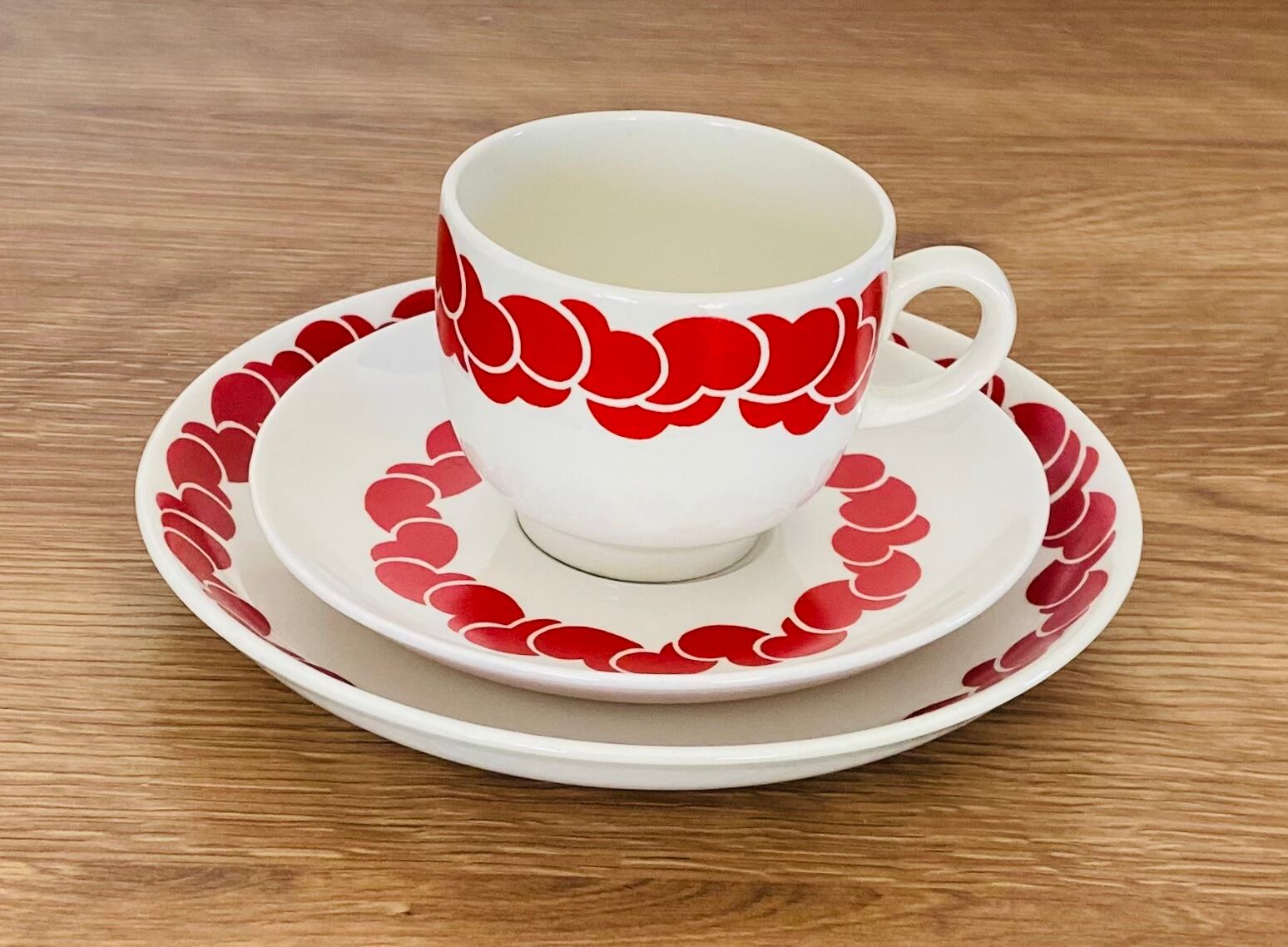Arabia(アラビア)Pirvi (ピルヴィ)シリーズからを3 piece setを入荷致しました。「Pirvi」は「雲」という意味です。丸みのある雲のような赤いハートがふわふわと並んでとっても可愛らしいデザインです。デザインはGoran Back、1971年〜1972年製造。