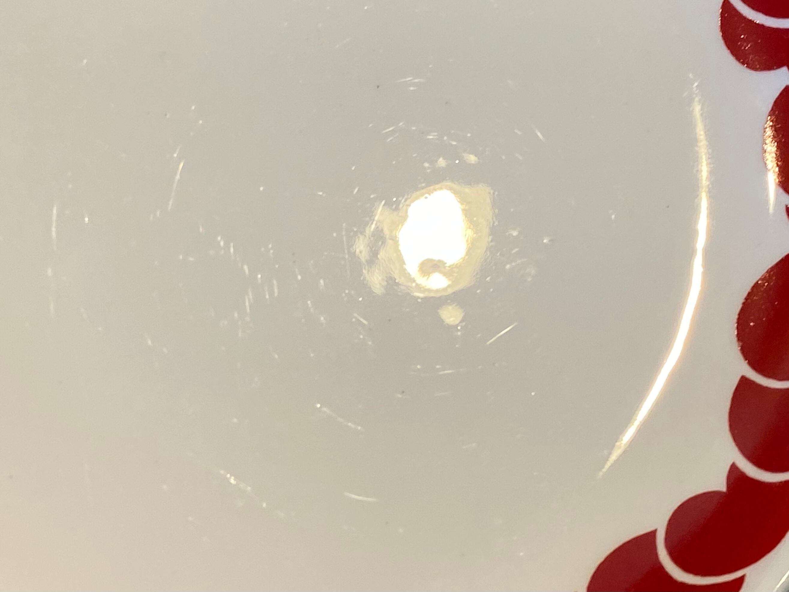 当店で取り扱っている商品は、北欧の一般家庭で実際に使用されていたヴィンテージ品です。目立つ傷や汚れについては出来るだけ商品説明にて記載しておりますが、明記していない経年の劣化や使用に伴う細かなスレや傷、汚れなどがあることもございます。また、当時の北欧の陶磁器に多く見られる焼成時の支えの跡があります。新品では味わえない特有の風合いを楽しんで頂けたら幸いです。