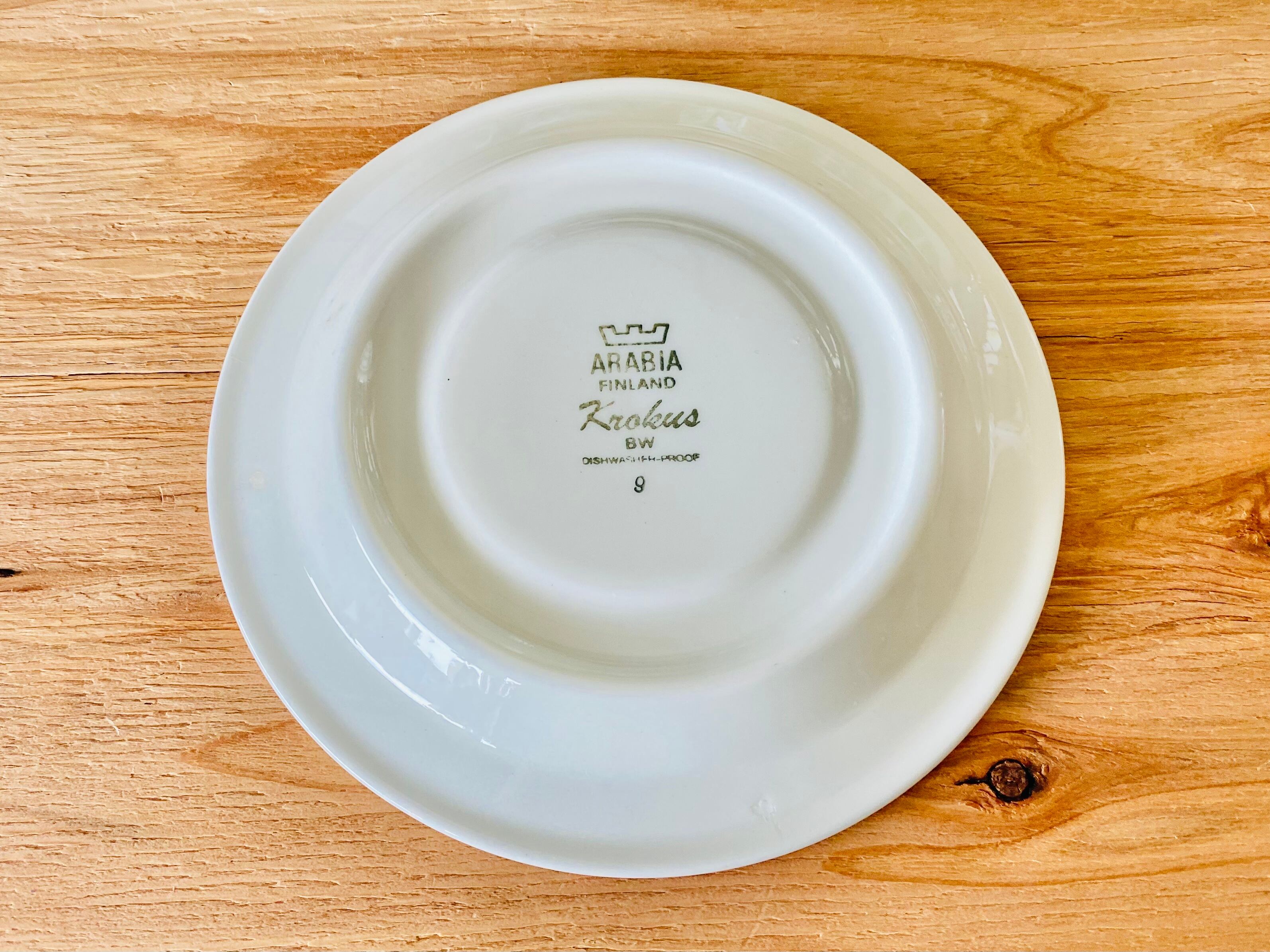Krokus(クロッカス)シリーズはArabia社屈指のデコレーターEsteri Tomula(エステリ・トムラ)の作品です。女性らしさ溢れる繊細に描かれたデザインは優しい雰囲気を持っています。1978年~1979年の僅か2年間の製造でしたが、知名度が高く、世界中にファンを持つ素敵なシリーズです。