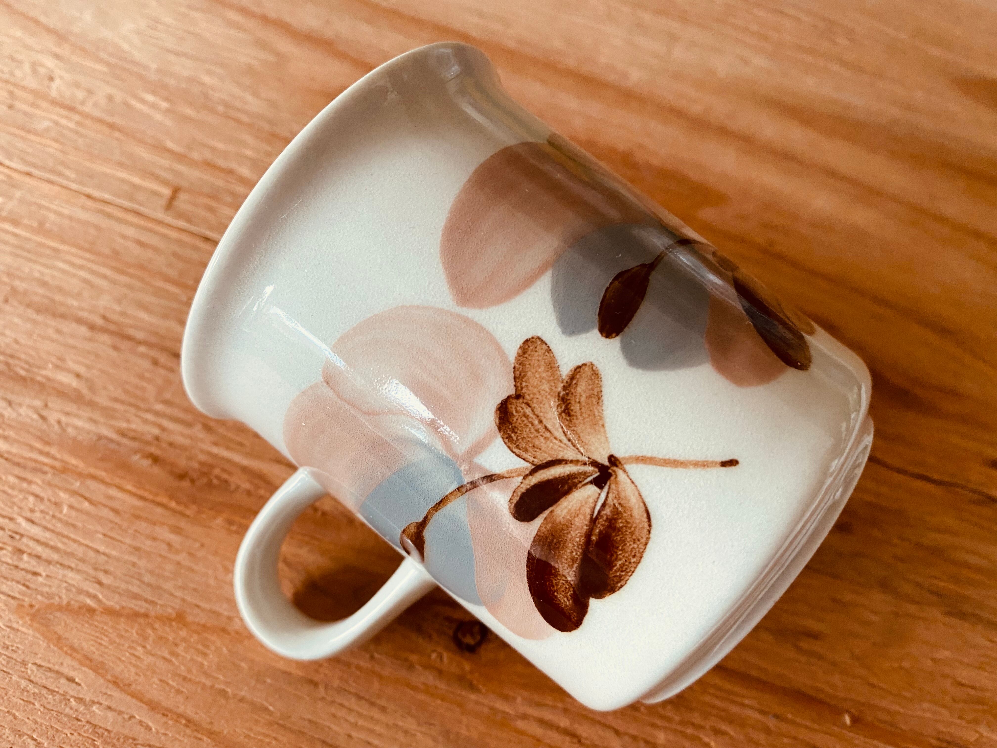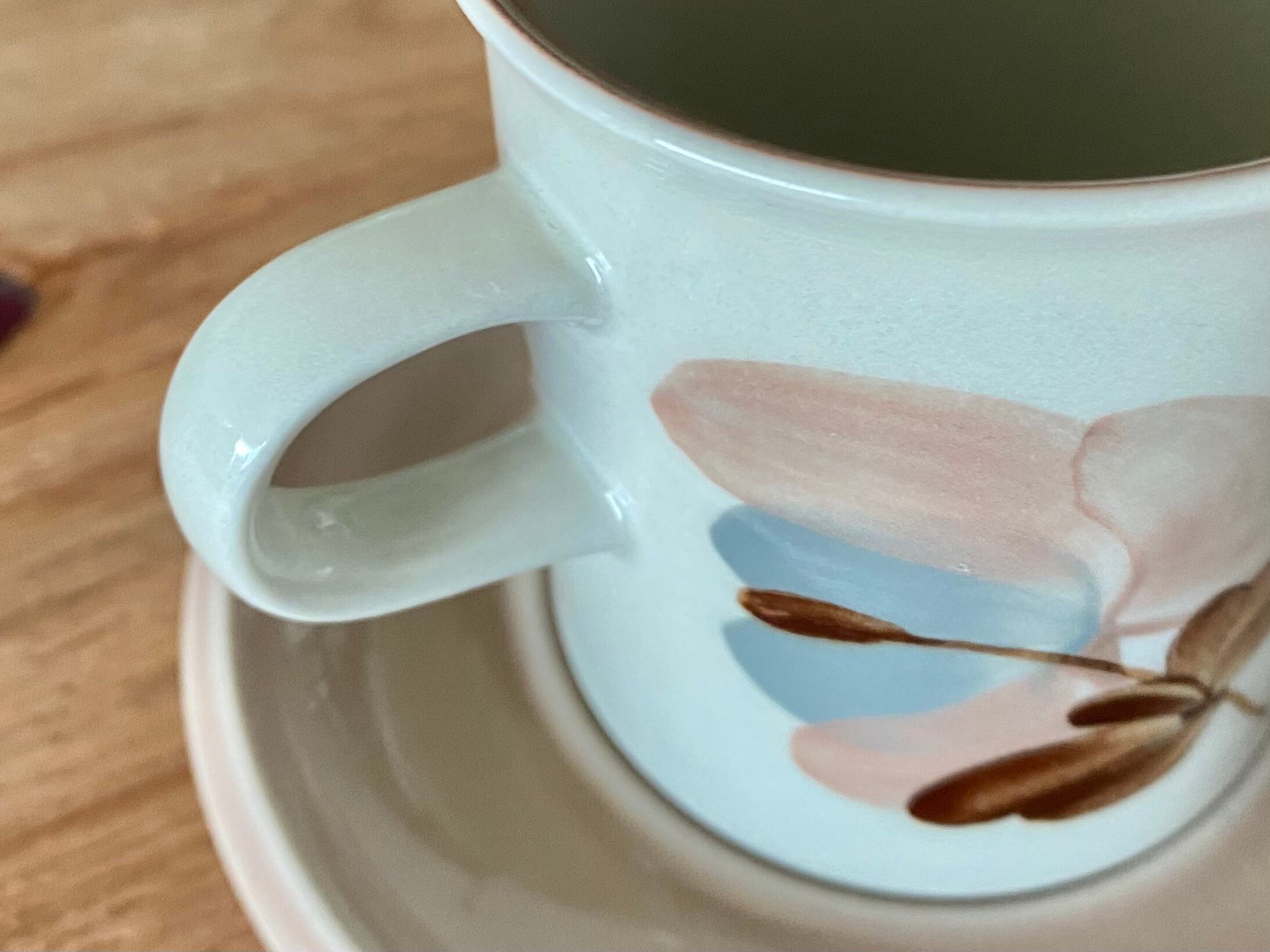 アラビア社の人気シリーズKoralli(コラーリ) コーヒーカップ&ソーサー (縦長タイプ)です。Koralliとは「珊瑚」という意味があり、その名の通り少し落ち着いたくすみピンクが特徴です。