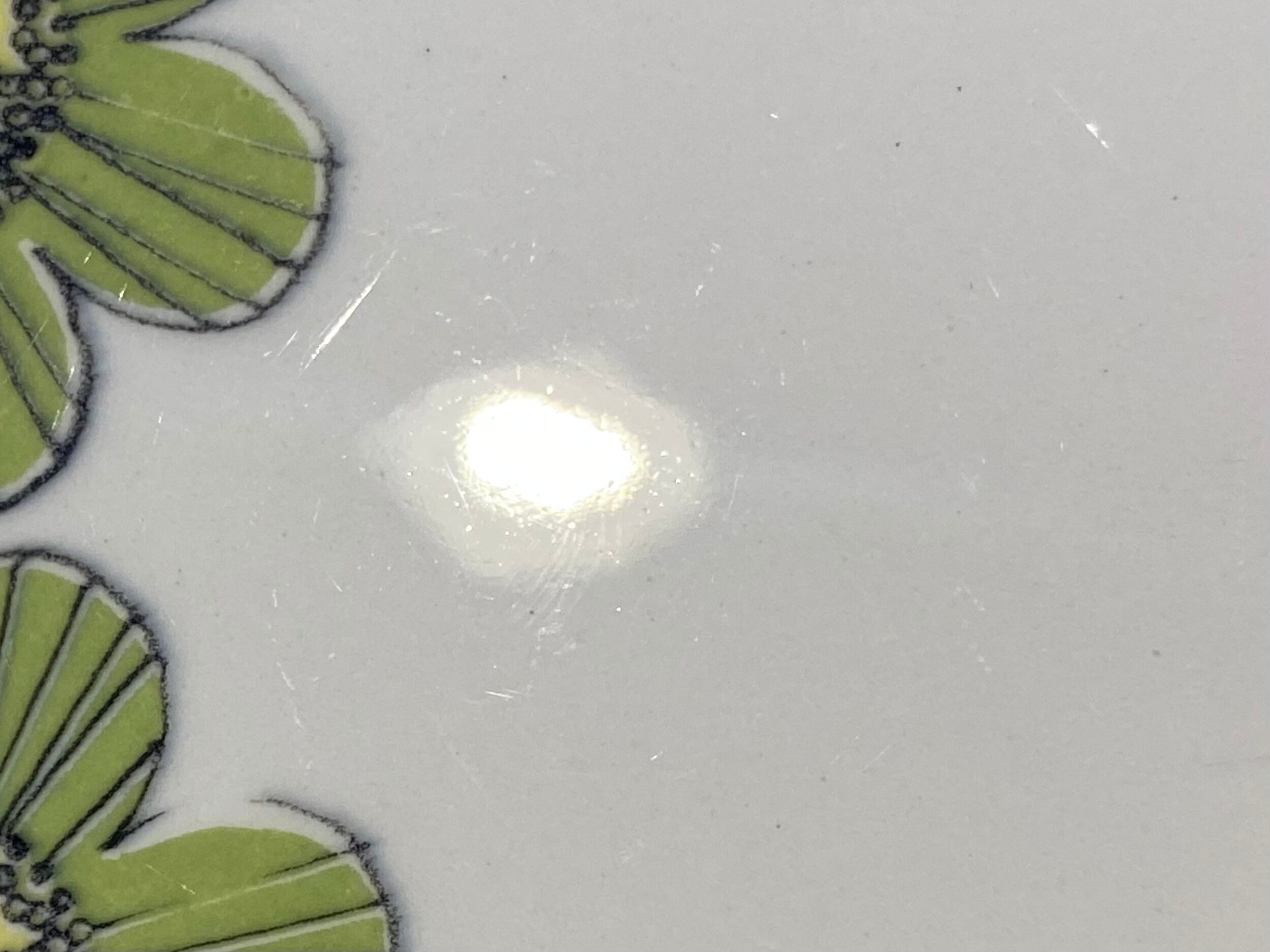 カトラリー跡が少なく大変綺麗なコンディションです。経年による細かなスレや汚れ、小傷などがあります。製造時に生じる凸凹や黒点、焼成時の支え跡があります。