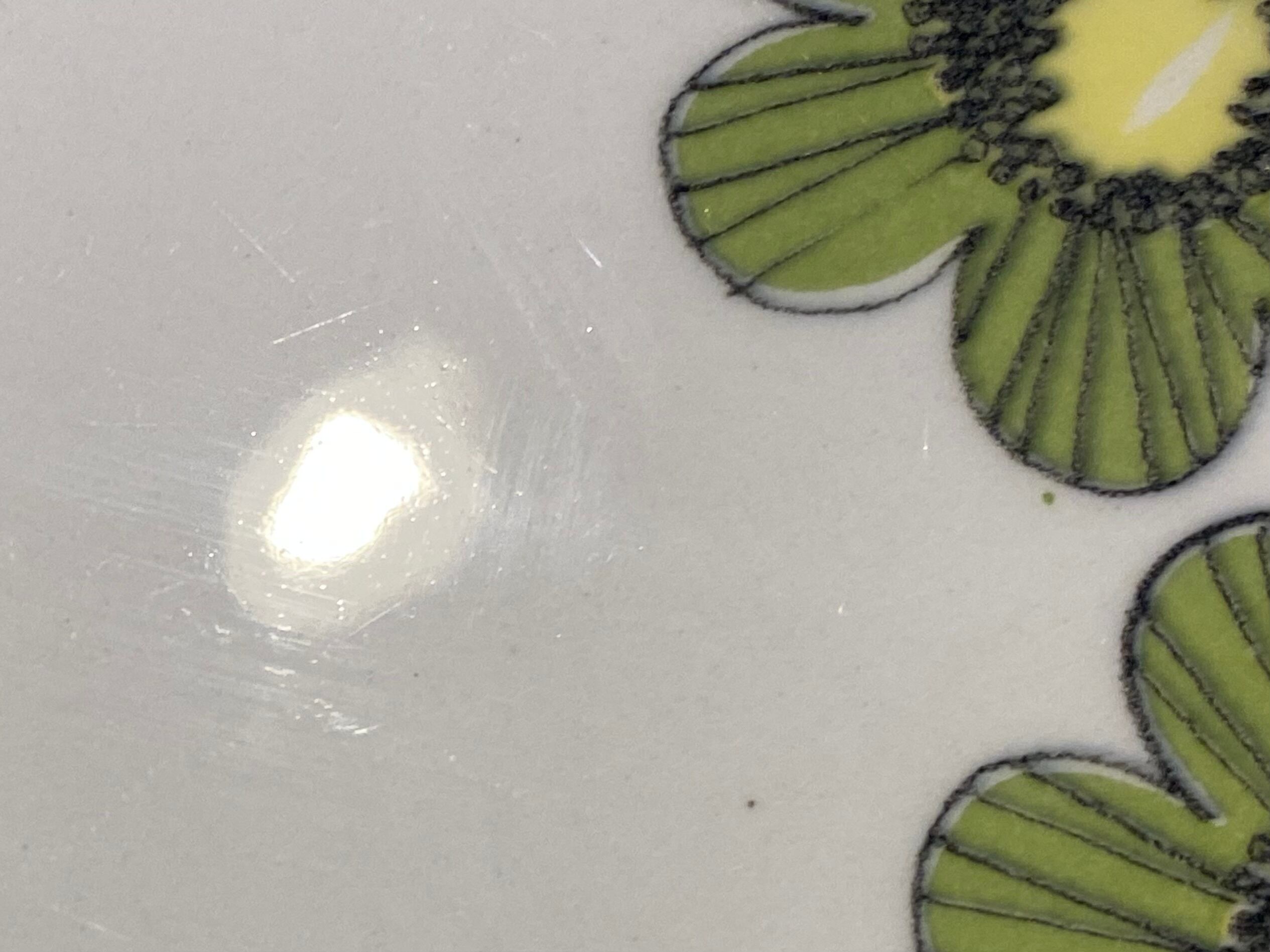 当店で取り扱っている商品は、北欧の一般家庭で実際に使用されていたヴィンテージ品です。目立つ傷や汚れについては出来るだけ商品説明にて記載しておりますが、明記していない経年の劣化や使用に伴う細かなスレや傷、汚れなどがあることもございます。また、当時の北欧の陶磁器に多く見られる焼成時の支えの跡があります。新品では味わえない特有の風合いを楽しんで頂けたら幸いです。