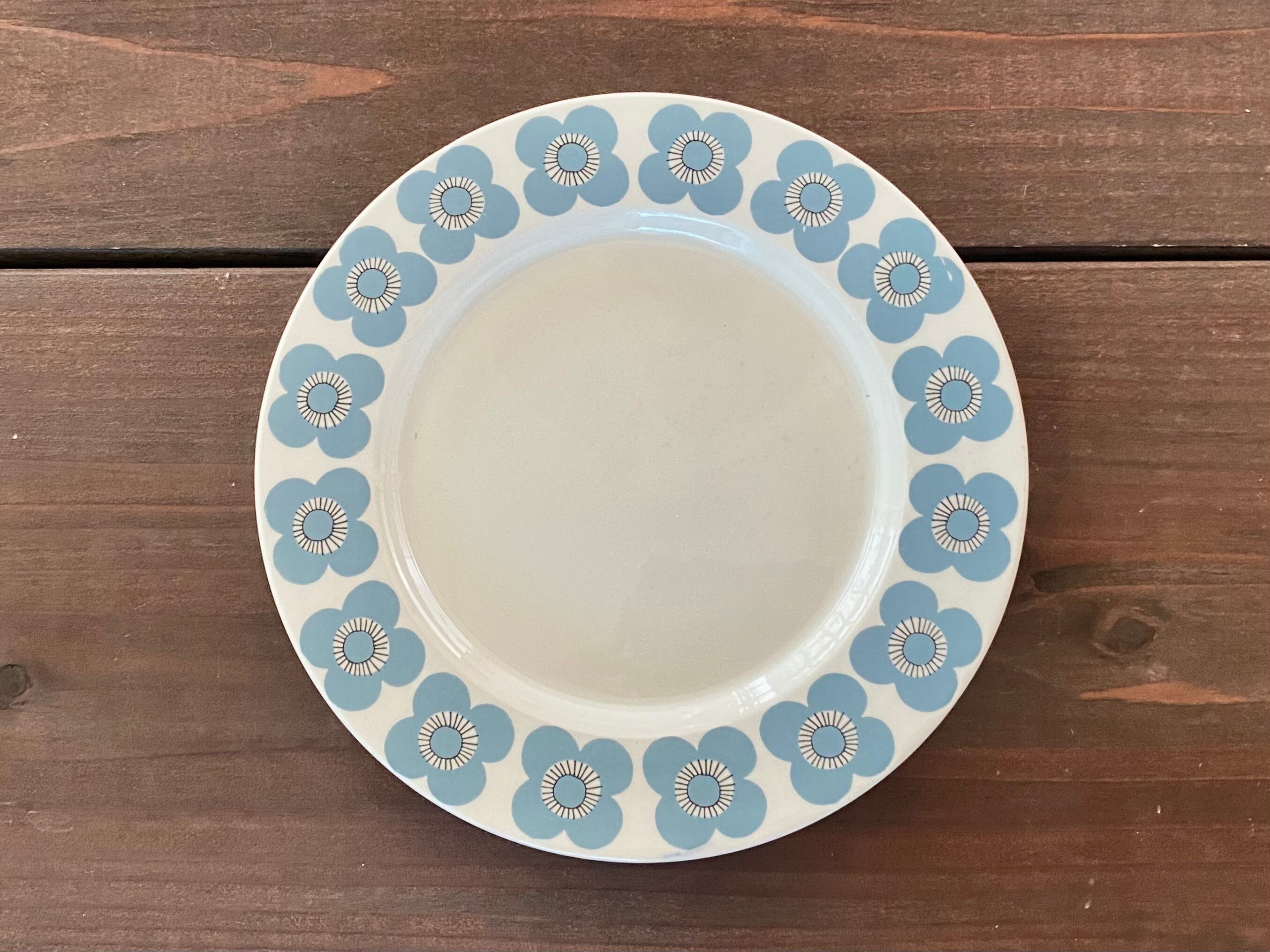 Arabia Veera シリーズからケーキプレートのご紹介です。デザインはお花をモチーフにした作品が有名なEsteri Tomula(エステリ・トムラ)です。ソフトなブルーグレーカラーの可愛らしいお花たちが縁周りに並んでいます。