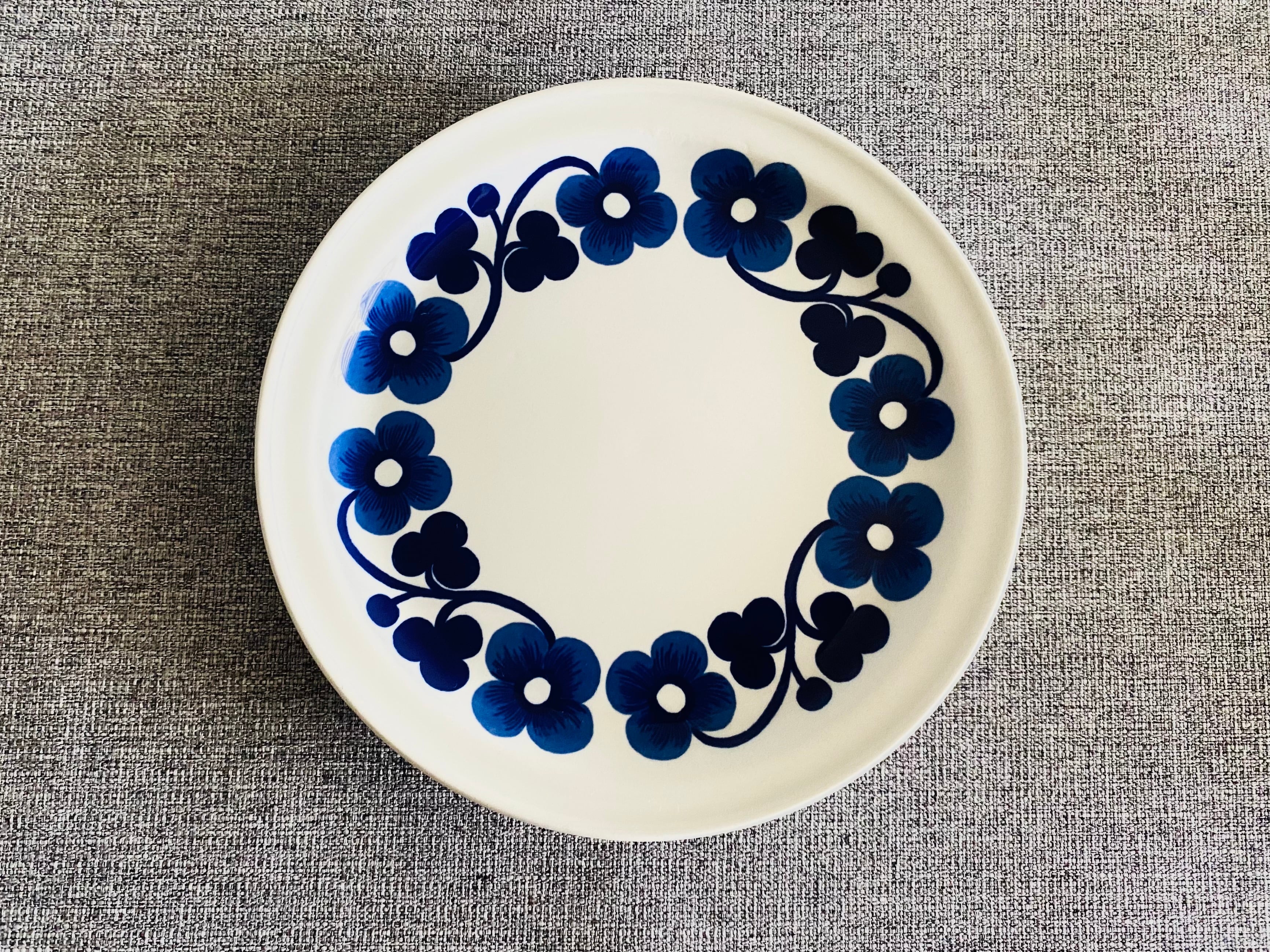 Arabia Aamu(アアム) シリーズ ケーキプレートです。デザインはお花をモチーフにした作品が有名なEsteri Tomula(エステリ・トムラ)さん、。深みある美しい藍色のお花たちが白地に引き立っています。Aamuとはフィンランド語で「朝」という意味があります。朝食ではパンやフルーツなど乗せて爽やかなテーブルコーディネートをお楽しみください。