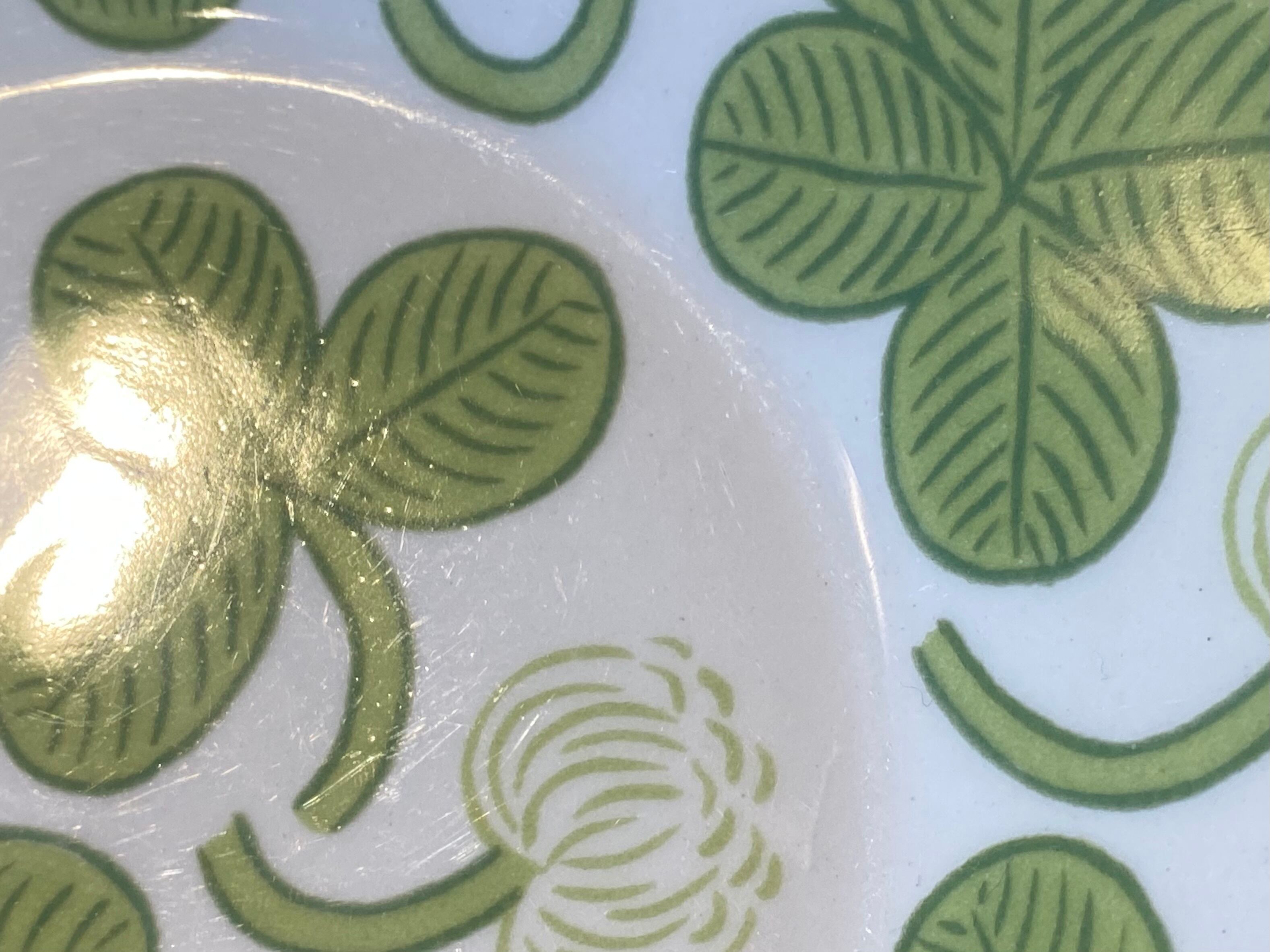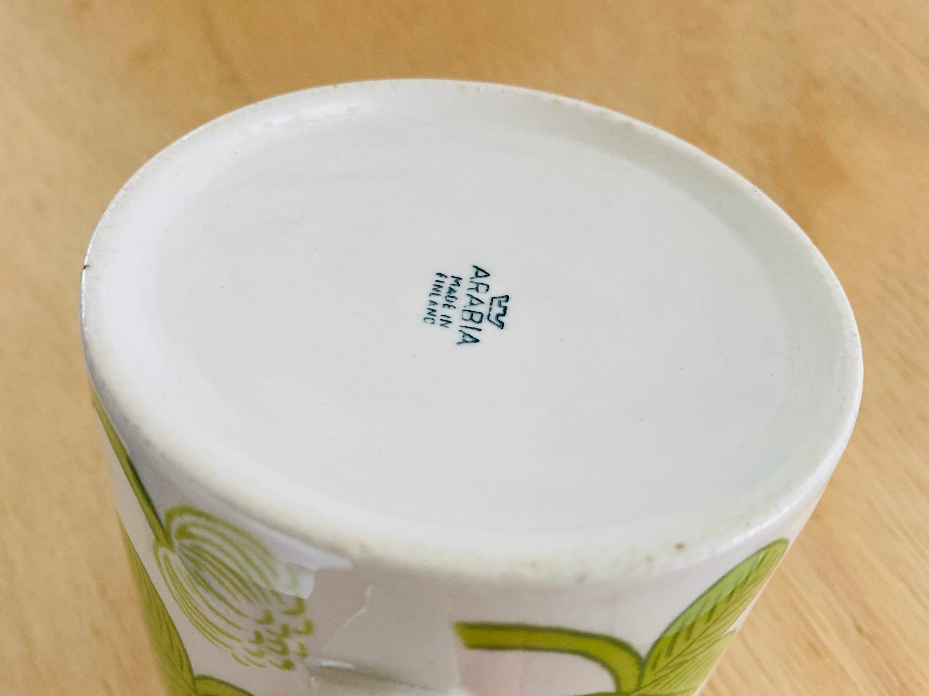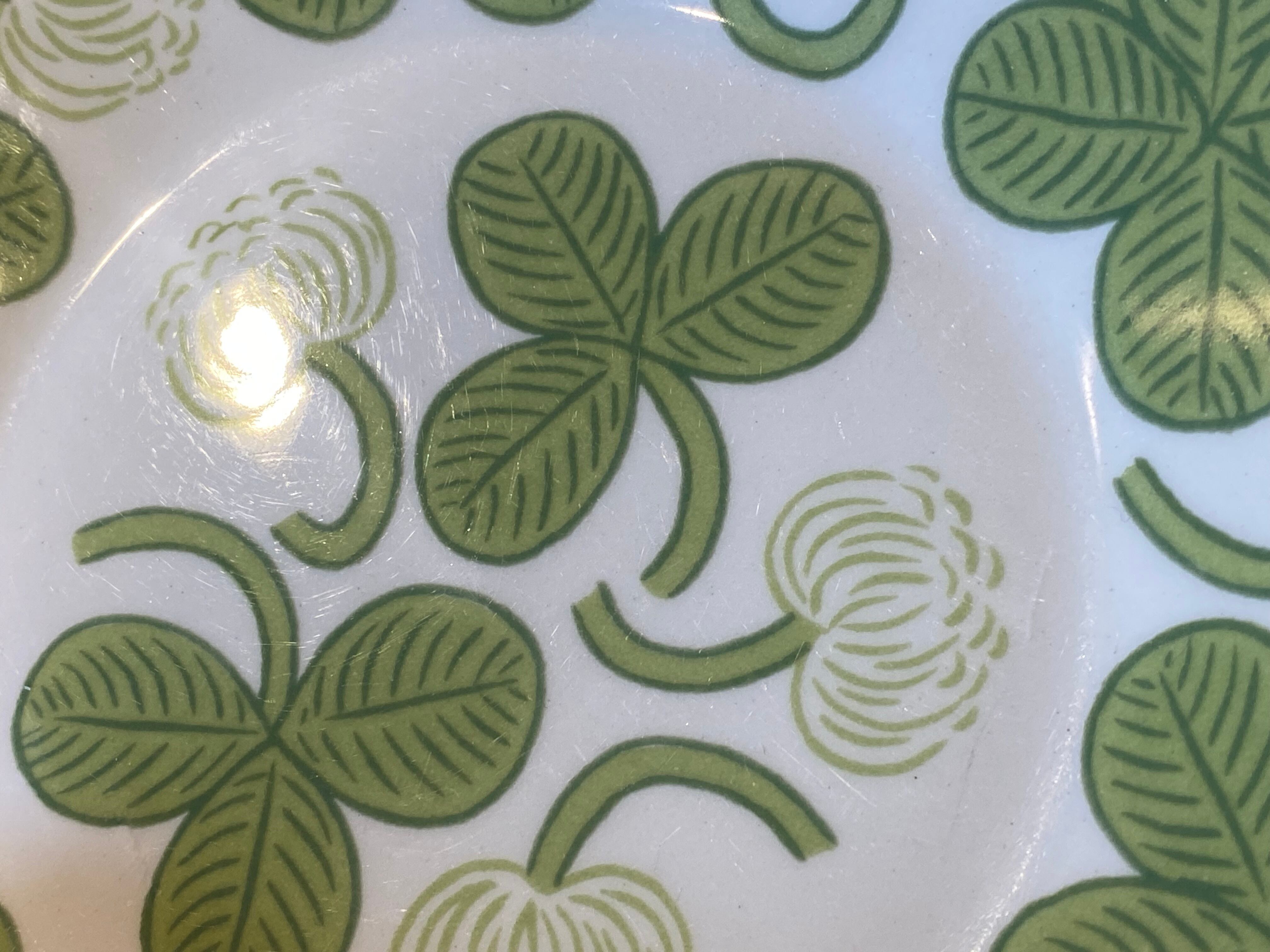 Arabia(アラビア)社のデザイナー Birger kaipiainen(ビルガー・カイピアイネン)がフォルムデザイン、デコレートデザイン共に手掛けた人気作品「Apila」。アラビア食器の中では屈指の人気シリーズで、日本ではもちろん世界中に多くのファンがいます。さわやかな緑のクローバーが大胆にデザインされ、とっても明るい気持ちにさせてくれます。こちのお品はヴィンテージです。復刻版ではありません。