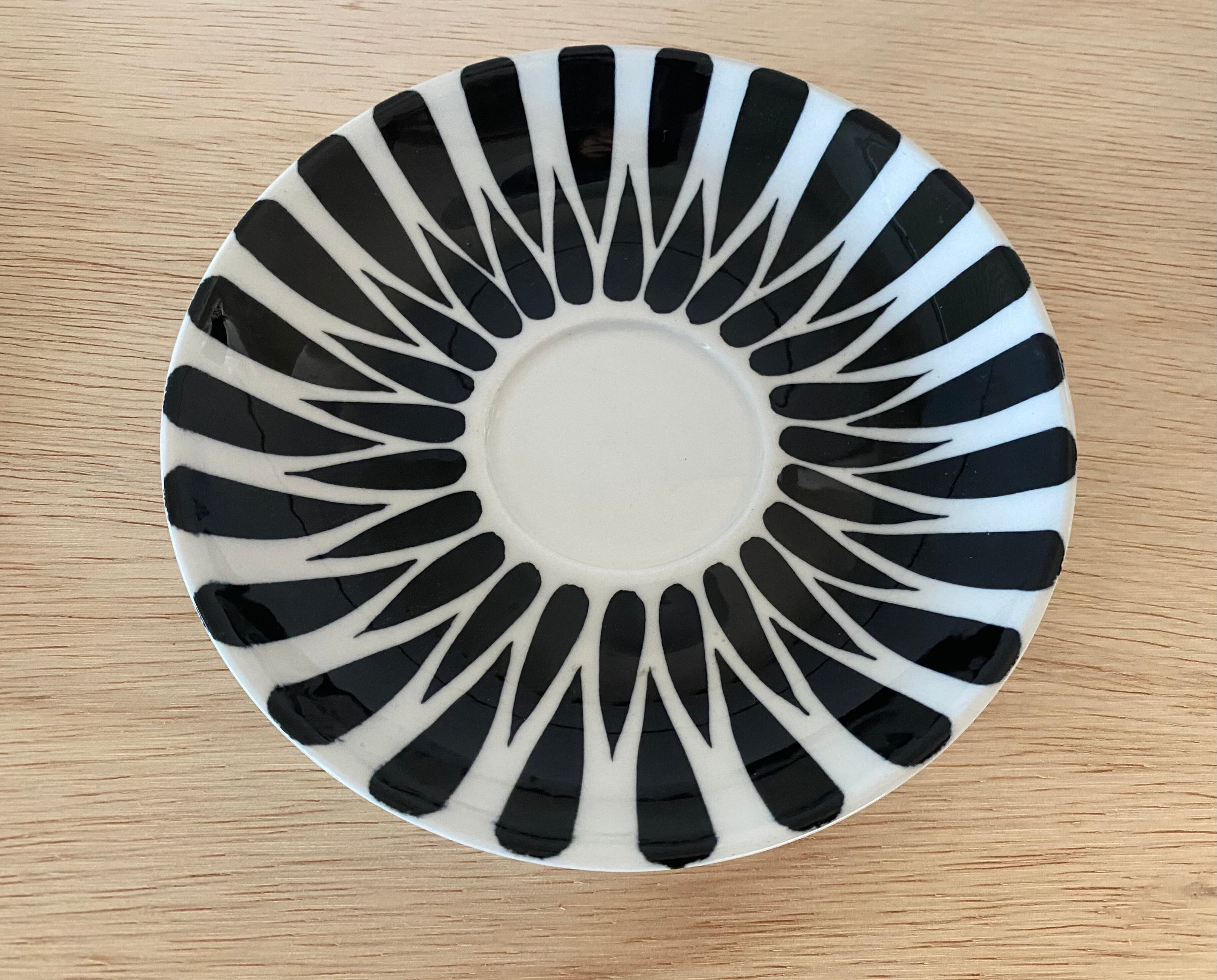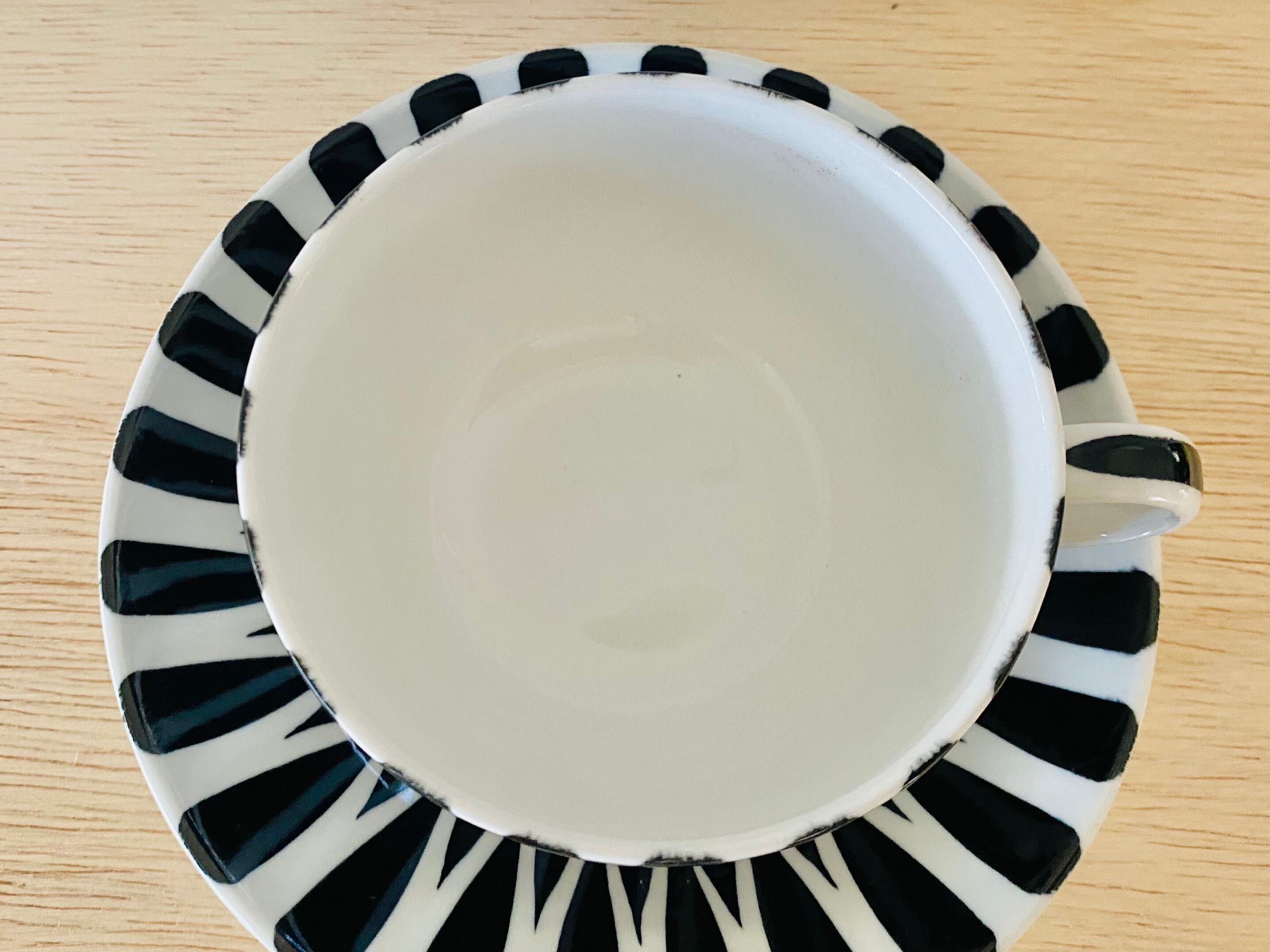 ソーサーのカップ接触部分にスレが見受けられます。裏面には製造時の支え跡がフチにあります。経年による極小のスレや汚れなど多少ございます。製造時に生じた針先程度の黒点がカップ底にあります。大変良好なヴィンテージ コンディションです。